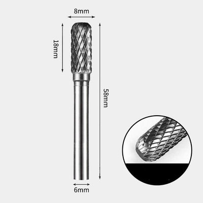 Tungsten Carbide Cylindrical Radius Flat End Rotary Burr Double-cut 8 x 18mm