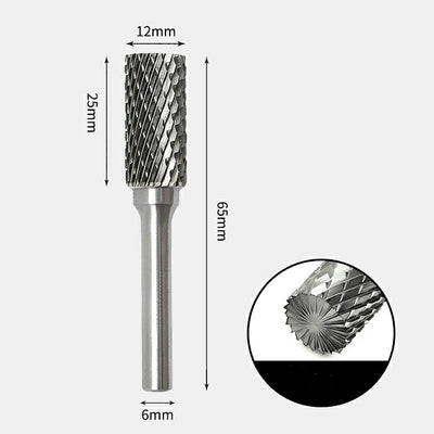 Tungsten Carbide Cylindrical with End Cut Rotary Burr Double-cut 12 x 25mm