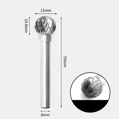 Tungsten Carbide Round Ball Shape Rotary Burr Double-cut 12 x 10mm