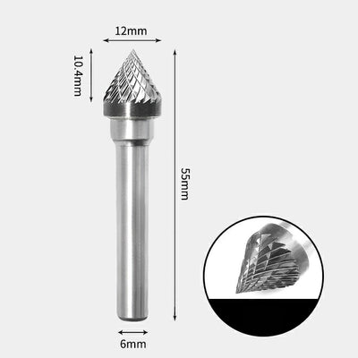 Fraise rotative en carbure de tungstène, angle inclus de 60 degrés, double coupe, 12x10mm