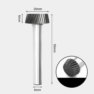 Fraise rotative à extrémité plate et cône en carbure de tungstène, coupe unique, 16 x 6 mm