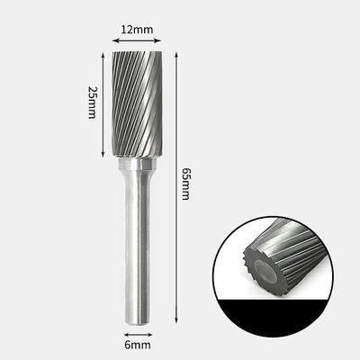 Fraise rotative cylindrique à extrémité plate en carbure de tungstène, coupe unique 12 x 25 mm