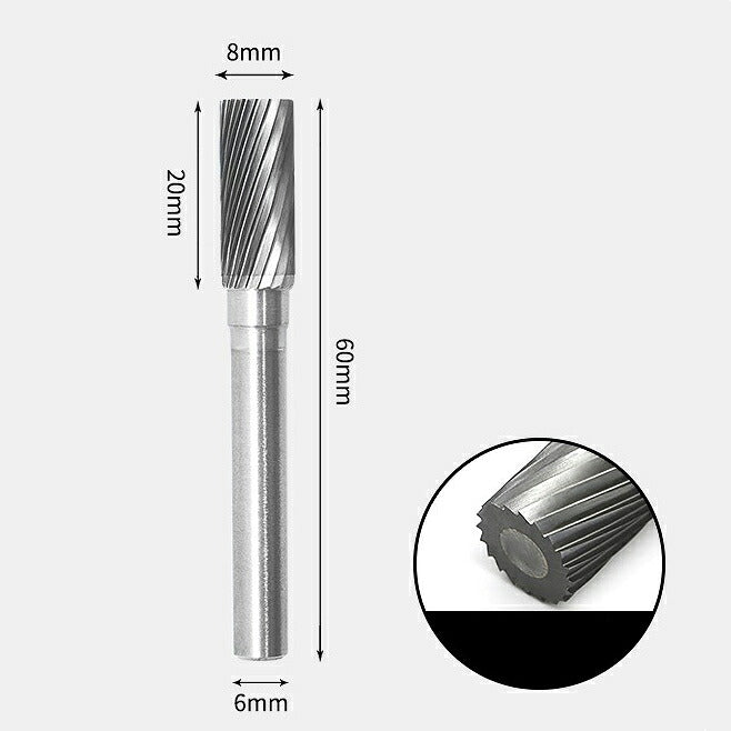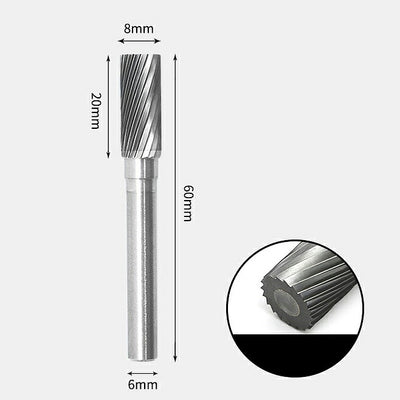 Fraise rotative cylindrique à extrémité plate en carbure de tungstène Coupe unique 8 x 20 mm