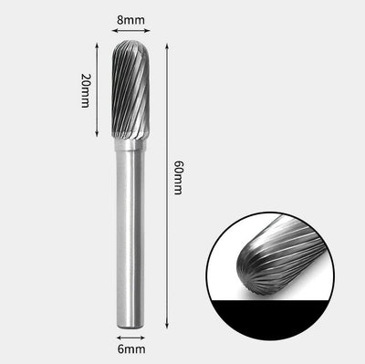 Fraise rotative à extrémité cylindrique en carbure de tungstène Coupe unique 8 x 20 mm