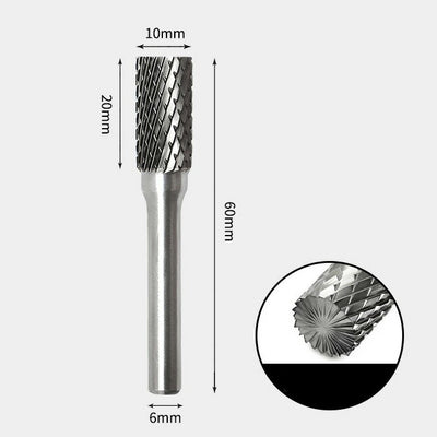 Fraise rotative cylindrique en carbure de tungstène avec coupe en bout, double coupe 10 x 20 mm