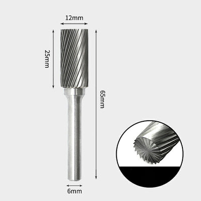 Fraise rotative cylindrique en carbure de tungstène avec coupe en bout, coupe unique 12 x 25 mm