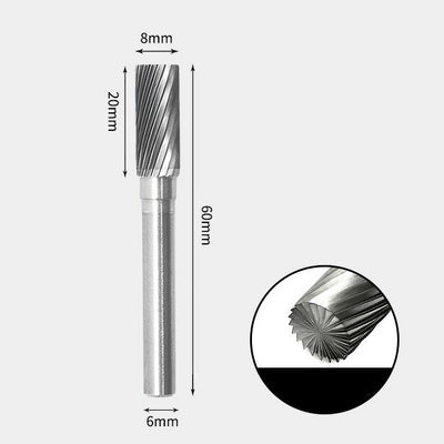 Fraise rotative cylindrique en carbure de tungstène avec coupe en bout, coupe unique 8 x 20 mm