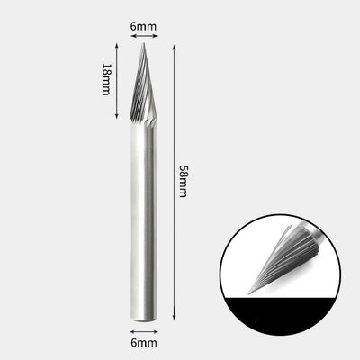 Fraise rotative à cône pointu en carbure de tungstène Coupe unique 6 x 18 mm