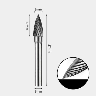 Fraise rotative à arbre pointu en carbure de tungstène, coupe unique 8 x 17 mm